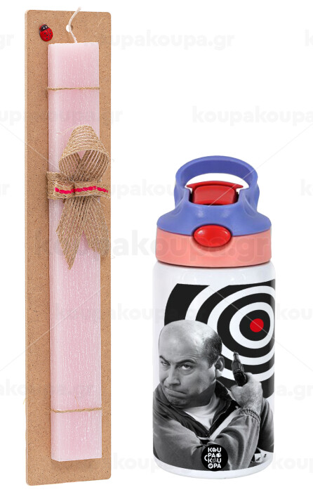 Θου Βου Φαλακρός Πράκτωρ, Πασχαλινή Λαμπάδα με Παιδικό παγούρι θερμό, ανοξείδωτο, με καλαμάκι ασφαλείας, ροζ/μωβ (350ml) & κερί αρωματικό πλακέ (30cm) (ΡΟΖ)