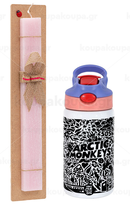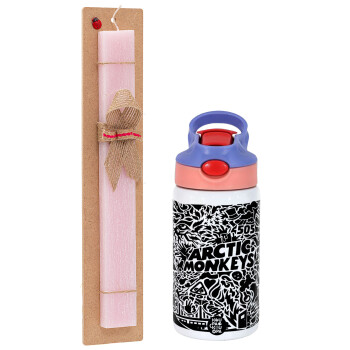 Arctic Monkeys, Πασχαλινή Λαμπάδα με Παιδικό παγούρι θερμό, ανοξείδωτο, με καλαμάκι ασφαλείας, ροζ/μωβ (350ml) & κερί αρωματικό πλακέ (30cm) (ΡΟΖ)