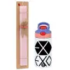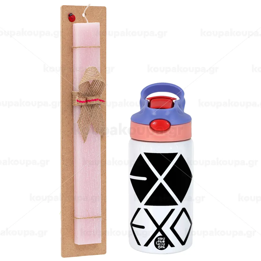 EXO Band korea, Πασχαλινή Λαμπάδα με Παιδικό παγούρι θερμό, ανοξείδωτο, με καλαμάκι ασφαλείας, ροζ/μωβ (350ml) & κερί αρωματικό πλακέ (30cm) (ΡΟΖ)