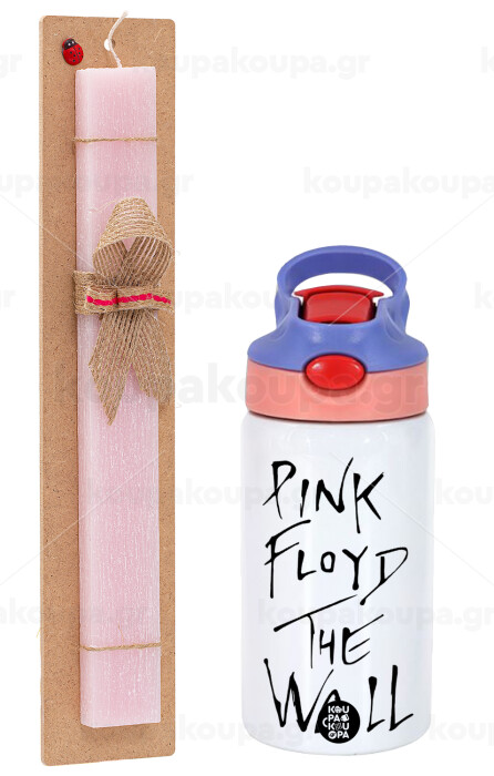 Pink Floyd, The Wall, Πασχαλινή Λαμπάδα με Παιδικό παγούρι θερμό, ανοξείδωτο, με καλαμάκι ασφαλείας, ροζ/μωβ (350ml) & κερί αρωματικό πλακέ (30cm) (ΡΟΖ)