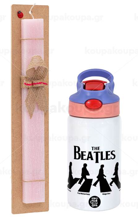The Beatles, Abbey Road, Πασχαλινή Λαμπάδα με Παιδικό παγούρι θερμό, ανοξείδωτο, με καλαμάκι ασφαλείας, ροζ/μωβ (350ml) & κερί αρωματικό πλακέ (30cm) (ΡΟΖ)