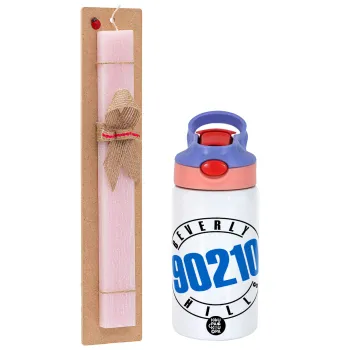 Beverly Hills, 90210, Πασχαλινή Λαμπάδα με Παιδικό παγούρι θερμό, ανοξείδωτο, με καλαμάκι ασφαλείας, ροζ/μωβ (350ml) & κερί αρωματικό πλακέ (30cm) (ΡΟΖ)