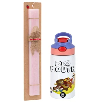 Big mouth, Πασχαλινή Λαμπάδα με Παιδικό παγούρι θερμό, ανοξείδωτο, με καλαμάκι ασφαλείας, ροζ/μωβ (350ml) & κερί αρωματικό πλακέ (30cm) (ΡΟΖ)