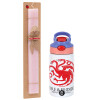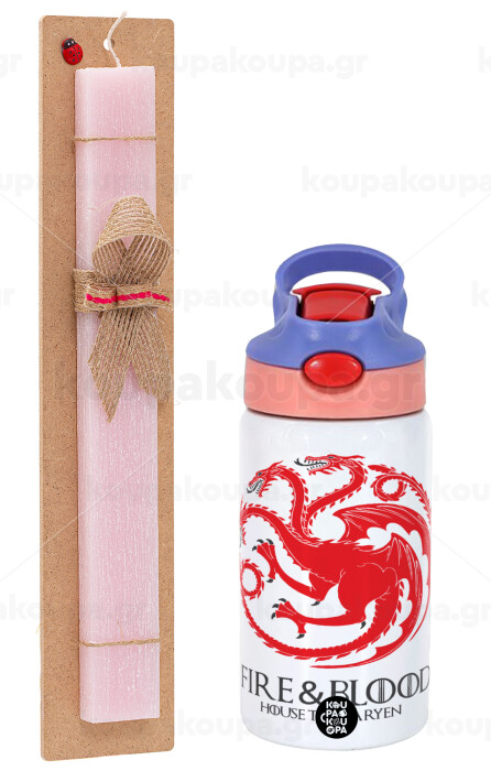 GOT House Targaryen, Fire Blood, Πασχαλινή Λαμπάδα με Παιδικό παγούρι θερμό, ανοξείδωτο, με καλαμάκι ασφαλείας, ροζ/μωβ (350ml) & κερί αρωματικό πλακέ (30cm) (ΡΟΖ)