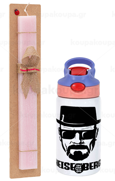 Heisenberg breaking bad, Πασχαλινή Λαμπάδα με Παιδικό παγούρι θερμό, ανοξείδωτο, με καλαμάκι ασφαλείας, ροζ/μωβ (350ml) & κερί αρωματικό πλακέ (30cm) (ΡΟΖ)