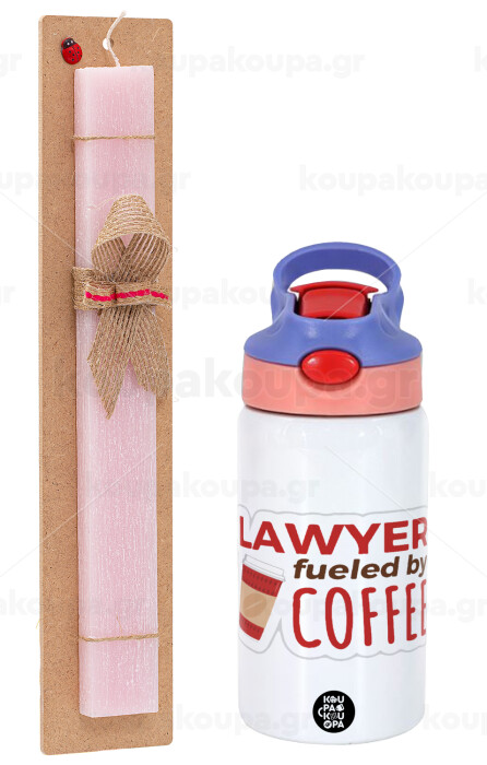 Lawyer fueled by coffee, Πασχαλινή Λαμπάδα με Παιδικό παγούρι θερμό, ανοξείδωτο, με καλαμάκι ασφαλείας, ροζ/μωβ (350ml) & κερί αρωματικό πλακέ (30cm) (ΡΟΖ)