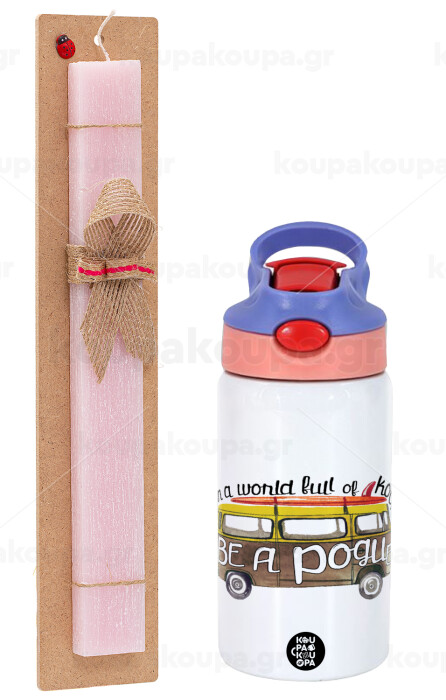 Outerbanks Pogue Life, Πασχαλινή Λαμπάδα με Παιδικό παγούρι θερμό, ανοξείδωτο, με καλαμάκι ασφαλείας, ροζ/μωβ (350ml) & κερί αρωματικό πλακέ (30cm) (ΡΟΖ)