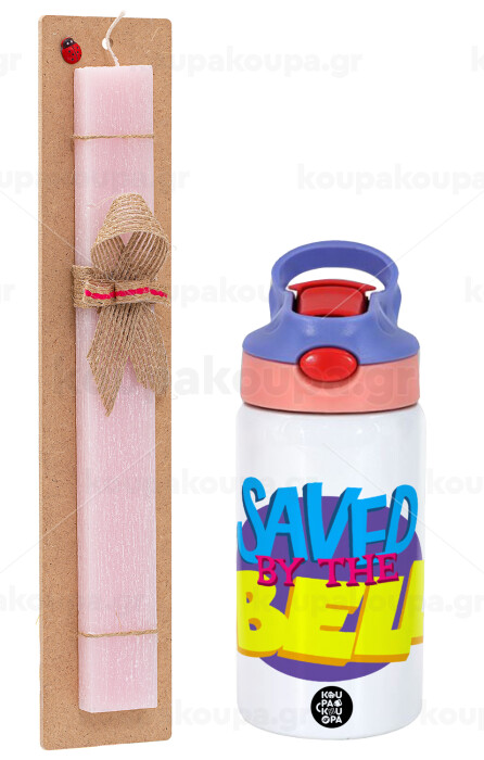 Saved by the Bell, Πασχαλινή Λαμπάδα με Παιδικό παγούρι θερμό, ανοξείδωτο, με καλαμάκι ασφαλείας, ροζ/μωβ (350ml) & κερί αρωματικό πλακέ (30cm) (ΡΟΖ)