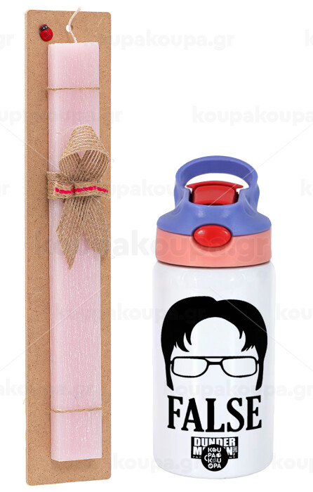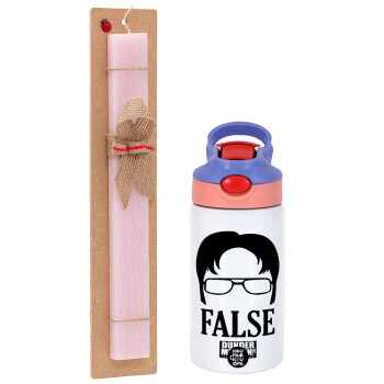 The office Dwight false, Πασχαλινή Λαμπάδα με Παιδικό παγούρι θερμό, ανοξείδωτο, με καλαμάκι ασφαλείας, ροζ/μωβ (350ml) & κερί αρωματικό πλακέ (30cm) (ΡΟΖ)