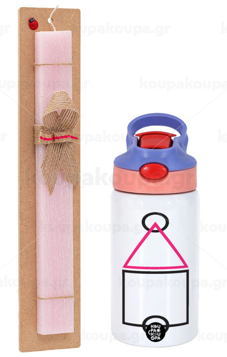 The squid game ojingeo, Πασχαλινή Λαμπάδα με Παιδικό παγούρι θερμό, ανοξείδωτο, με καλαμάκι ασφαλείας, ροζ/μωβ (350ml) & κερί αρωματικό πλακέ (30cm) (ΡΟΖ)