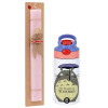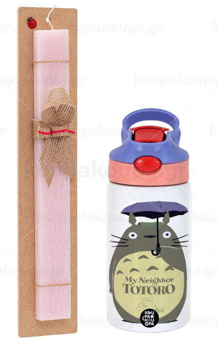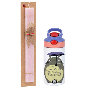Totoro from My Neighbor Totoro, Πασχαλινή Λαμπάδα με Παιδικό παγούρι θερμό, ανοξείδωτο, με καλαμάκι ασφαλείας, ροζ/μωβ (350ml) & κερί αρωματικό πλακέ (30cm) (ΡΟΖ)