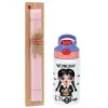 Wednesday Adams, i hate people, Πασχαλινή Λαμπάδα με Παιδικό παγούρι θερμό, ανοξείδωτο, με καλαμάκι ασφαλείας, ροζ/μωβ (350ml) & κερί αρωματικό πλακέ (30cm) (ΡΟΖ)