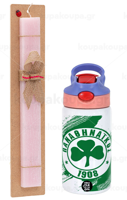 Π.Α.Ο., Πασχαλινή Λαμπάδα με Παιδικό παγούρι θερμό, ανοξείδωτο, με καλαμάκι ασφαλείας, ροζ/μωβ (350ml) & κερί αρωματικό πλακέ (30cm) (ΡΟΖ)