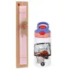 Basketball, Πασχαλινή Λαμπάδα με Παιδικό παγούρι θερμό, ανοξείδωτο, με καλαμάκι ασφαλείας, ροζ/μωβ (350ml) & κερί αρωματικό πλακέ (30cm) (ΡΟΖ)