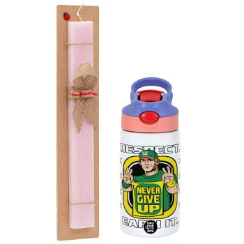 John Cena, Πασχαλινή Λαμπάδα με Παιδικό παγούρι θερμό, ανοξείδωτο, με καλαμάκι ασφαλείας, ροζ/μωβ (350ml) & κερί αρωματικό πλακέ (30cm) (ΡΟΖ)