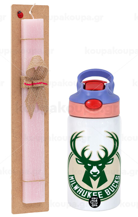 Milwaukee bucks, Πασχαλινή Λαμπάδα με Παιδικό παγούρι θερμό, ανοξείδωτο, με καλαμάκι ασφαλείας, ροζ/μωβ (350ml) & κερί αρωματικό πλακέ (30cm) (ΡΟΖ)