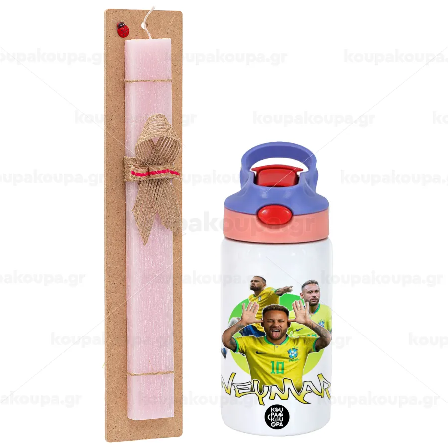 Neymar JR, Πασχαλινή Λαμπάδα με Παιδικό παγούρι θερμό, ανοξείδωτο, με καλαμάκι ασφαλείας, ροζ/μωβ (350ml) & κερί αρωματικό πλακέ (30cm) (ΡΟΖ)