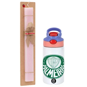 Palmeiras, Πασχαλινή Λαμπάδα με Παιδικό παγούρι θερμό, ανοξείδωτο, με καλαμάκι ασφαλείας, ροζ/μωβ (350ml) & κερί αρωματικό πλακέ (30cm) (ΡΟΖ)