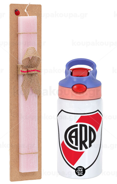 River Plate, Πασχαλινή Λαμπάδα με Παιδικό παγούρι θερμό, ανοξείδωτο, με καλαμάκι ασφαλείας, ροζ/μωβ (350ml) & κερί αρωματικό πλακέ (30cm) (ΡΟΖ)