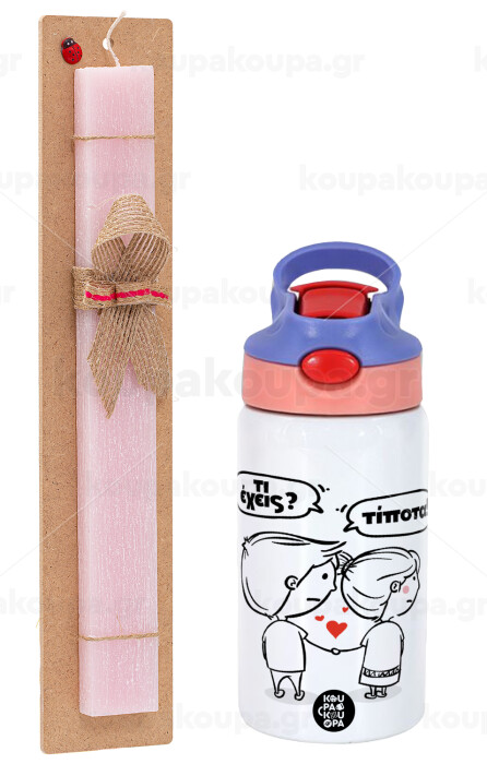 Τι έχεις? Τίποτα!, Πασχαλινή Λαμπάδα με Παιδικό παγούρι θερμό, ανοξείδωτο, με καλαμάκι ασφαλείας, ροζ/μωβ (350ml) & κερί αρωματικό πλακέ (30cm) (ΡΟΖ)