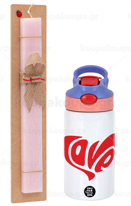 Love, Πασχαλινή Λαμπάδα με Παιδικό παγούρι θερμό, ανοξείδωτο, με καλαμάκι ασφαλείας, ροζ/μωβ (350ml) & κερί αρωματικό πλακέ (30cm) (ΡΟΖ)