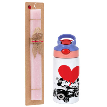Mickey & Minnie love car, Πασχαλινή Λαμπάδα με Παιδικό παγούρι θερμό, ανοξείδωτο, με καλαμάκι ασφαλείας, ροζ/μωβ (350ml) & κερί αρωματικό πλακέ (30cm) (ΡΟΖ)