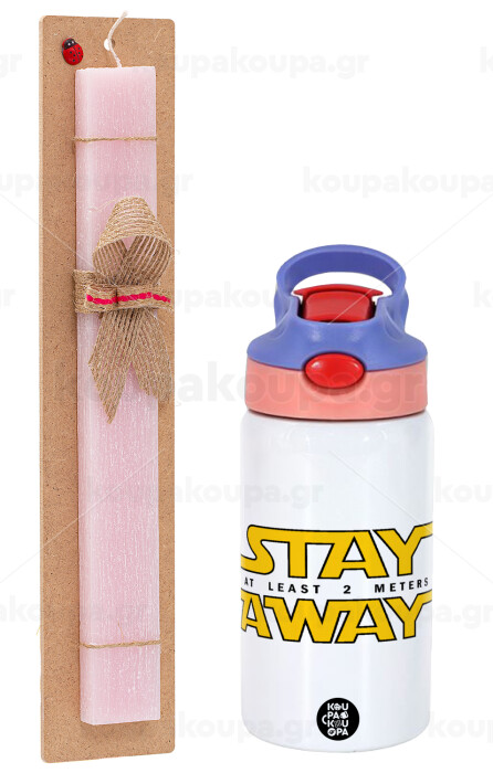 Stay Away, Πασχαλινή Λαμπάδα με Παιδικό παγούρι θερμό, ανοξείδωτο, με καλαμάκι ασφαλείας, ροζ/μωβ (350ml) & κερί αρωματικό πλακέ (30cm) (ΡΟΖ)