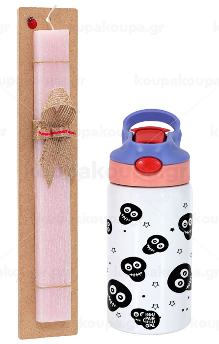 Skull avatar, Πασχαλινή Λαμπάδα με Παιδικό παγούρι θερμό, ανοξείδωτο, με καλαμάκι ασφαλείας, ροζ/μωβ (350ml) & κερί αρωματικό πλακέ (30cm) (ΡΟΖ)