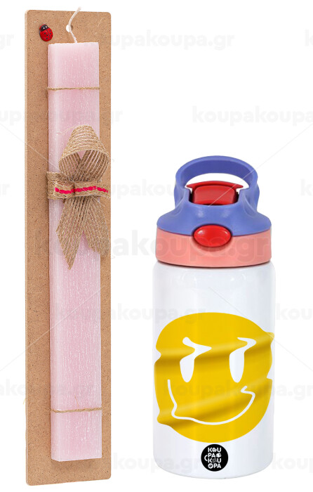 Smile avatar distrorted, Πασχαλινή Λαμπάδα με Παιδικό παγούρι θερμό, ανοξείδωτο, με καλαμάκι ασφαλείας, ροζ/μωβ (350ml) & κερί αρωματικό πλακέ (30cm) (ΡΟΖ)