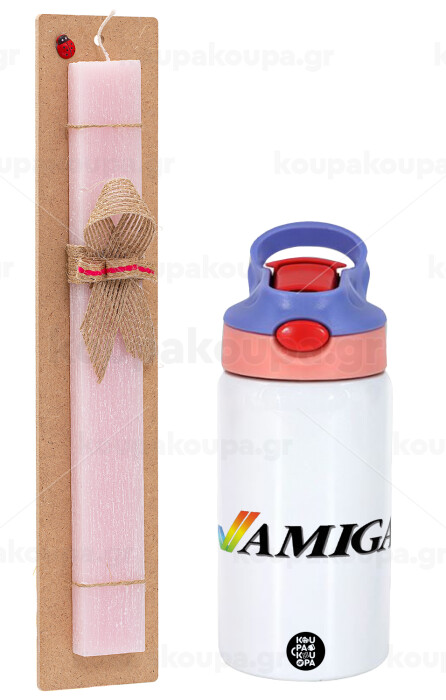amiga, Πασχαλινή Λαμπάδα με Παιδικό παγούρι θερμό, ανοξείδωτο, με καλαμάκι ασφαλείας, ροζ/μωβ (350ml) & κερί αρωματικό πλακέ (30cm) (ΡΟΖ)