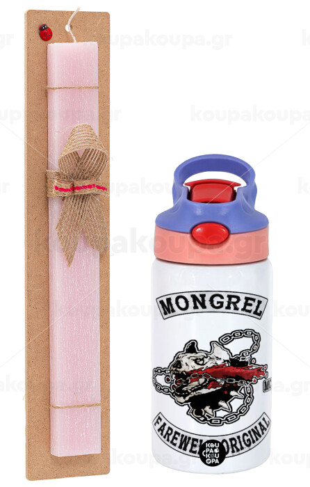 Day's Gone, mongrel farewell original, Πασχαλινή Λαμπάδα με Παιδικό παγούρι θερμό, ανοξείδωτο, με καλαμάκι ασφαλείας, ροζ/μωβ (350ml) & κερί αρωματικό πλακέ (30cm) (ΡΟΖ)