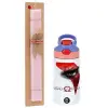 God of war Stratos, Πασχαλινή Λαμπάδα με Παιδικό παγούρι θερμό, ανοξείδωτο, με καλαμάκι ασφαλείας, ροζ/μωβ (350ml) & κερί αρωματικό πλακέ (30cm) (ΡΟΖ)