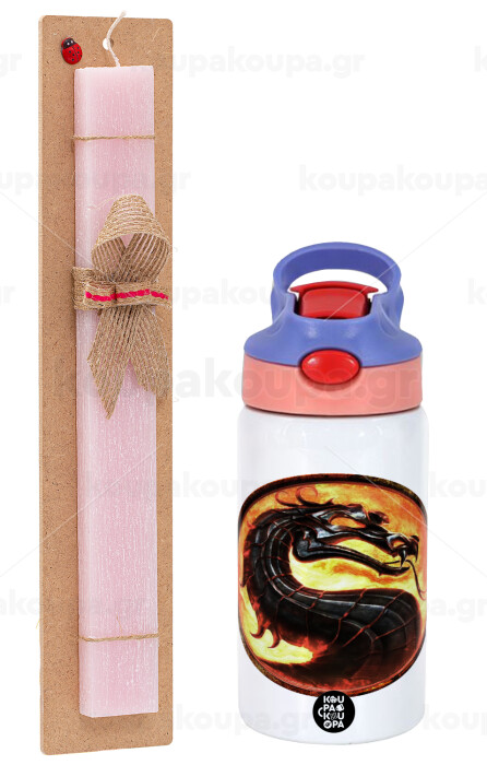 Mortal Kombat, Πασχαλινή Λαμπάδα με Παιδικό παγούρι θερμό, ανοξείδωτο, με καλαμάκι ασφαλείας, ροζ/μωβ (350ml) & κερί αρωματικό πλακέ (30cm) (ΡΟΖ)