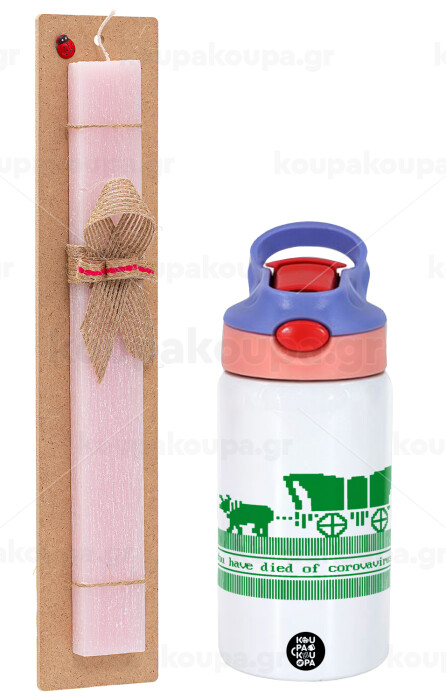 Oregon Trail, cov... edition, Πασχαλινή Λαμπάδα με Παιδικό παγούρι θερμό, ανοξείδωτο, με καλαμάκι ασφαλείας, ροζ/μωβ (350ml) & κερί αρωματικό πλακέ (30cm) (ΡΟΖ)
