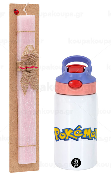 Pokemon, Πασχαλινή Λαμπάδα με Παιδικό παγούρι θερμό, ανοξείδωτο, με καλαμάκι ασφαλείας, ροζ/μωβ (350ml) & κερί αρωματικό πλακέ (30cm) (ΡΟΖ)