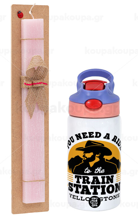 You need a ride to the train station, Πασχαλινή Λαμπάδα με Παιδικό παγούρι θερμό, ανοξείδωτο, με καλαμάκι ασφαλείας, ροζ/μωβ (350ml) & κερί αρωματικό πλακέ (30cm) (ΡΟΖ)
