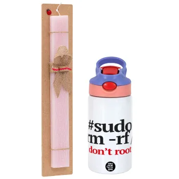 Sudo RM, Πασχαλινή Λαμπάδα με Παιδικό παγούρι θερμό, ανοξείδωτο, με καλαμάκι ασφαλείας, ροζ/μωβ (350ml) & κερί αρωματικό πλακέ (30cm) (ΡΟΖ)