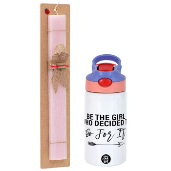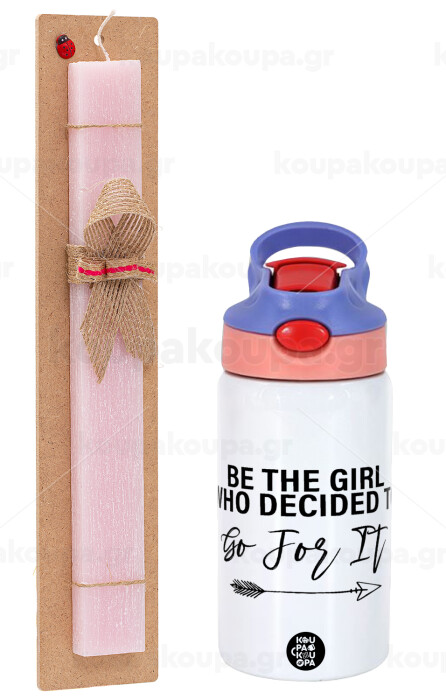 Be the girl who decided to, Πασχαλινή Λαμπάδα με Παιδικό παγούρι θερμό, ανοξείδωτο, με καλαμάκι ασφαλείας, ροζ/μωβ (350ml) & κερί αρωματικό πλακέ (30cm) (ΡΟΖ)