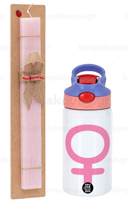 FEMALE, Πασχαλινή Λαμπάδα με Παιδικό παγούρι θερμό, ανοξείδωτο, με καλαμάκι ασφαλείας, ροζ/μωβ (350ml) & κερί αρωματικό πλακέ (30cm) (ΡΟΖ)