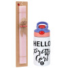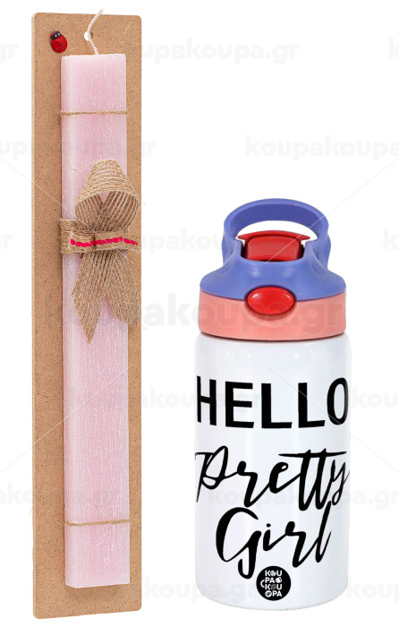 Hello pretty girl, Πασχαλινή Λαμπάδα με Παιδικό παγούρι θερμό, ανοξείδωτο, με καλαμάκι ασφαλείας, ροζ/μωβ (350ml) & κερί αρωματικό πλακέ (30cm) (ΡΟΖ)