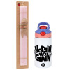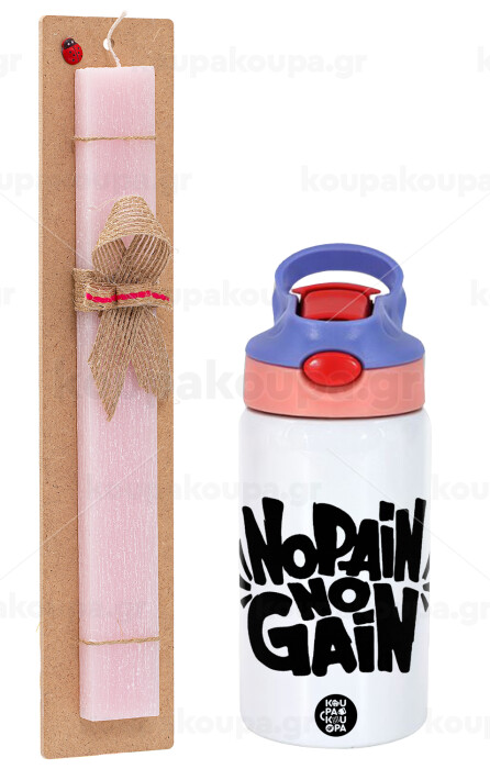 No pain no gain, Πασχαλινή Λαμπάδα με Παιδικό παγούρι θερμό, ανοξείδωτο, με καλαμάκι ασφαλείας, ροζ/μωβ (350ml) & κερί αρωματικό πλακέ (30cm) (ΡΟΖ)