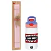 Trust no one... (zipper), Πασχαλινή Λαμπάδα με Παιδικό παγούρι θερμό, ανοξείδωτο, με καλαμάκι ασφαλείας, ροζ/μωβ (350ml) & κερί αρωματικό πλακέ (30cm) (ΡΟΖ)