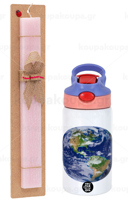 Planet Earth, Πασχαλινή Λαμπάδα με Παιδικό παγούρι θερμό, ανοξείδωτο, με καλαμάκι ασφαλείας, ροζ/μωβ (350ml) & κερί αρωματικό πλακέ (30cm) (ΡΟΖ)