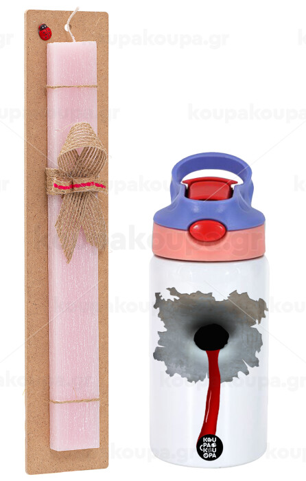 Bullet holes, Πασχαλινή Λαμπάδα με Παιδικό παγούρι θερμό, ανοξείδωτο, με καλαμάκι ασφαλείας, ροζ/μωβ (350ml) & κερί αρωματικό πλακέ (30cm) (ΡΟΖ)