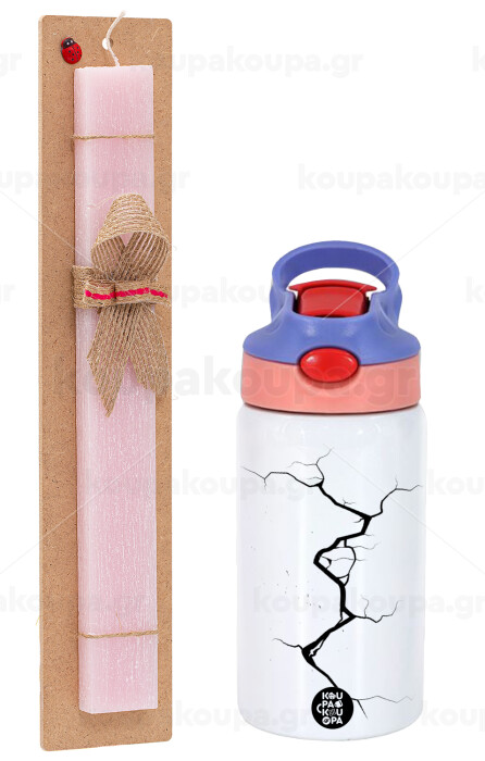 Cracked, Πασχαλινή Λαμπάδα με Παιδικό παγούρι θερμό, ανοξείδωτο, με καλαμάκι ασφαλείας, ροζ/μωβ (350ml) & κερί αρωματικό πλακέ (30cm) (ΡΟΖ)