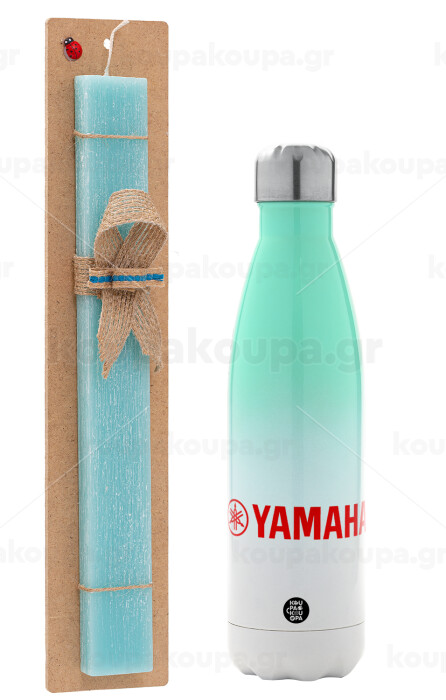 Yamaha, Πασχαλινή Λαμπάδα με Μεταλλικό παγούρι θερμός Πράσινο/Λευκό (Stainless steel), διπλού τοιχώματος, 500ml & κερί αρωματικό πλακέ (30cm) (ΤΙΡΚΟΥΑΖ)