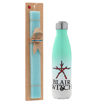 Πασχαλινή Λαμπάδα με Μεταλλικό παγούρι θερμός Πράσινο/Λευκό (Stainless steel), διπλού τοιχώματος, 500ml & κερί αρωματικό πλακέ (30cm) (ΤΙΡΚΟΥΑΖ) με θέμα Cinema
