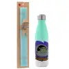 Baby Yoda mandalorian, Πασχαλινή Λαμπάδα με Μεταλλικό παγούρι θερμός Πράσινο/Λευκό (Stainless steel), διπλού τοιχώματος, 500ml & κερί αρωματικό πλακέ (30cm) (ΤΙΡΚΟΥΑΖ)