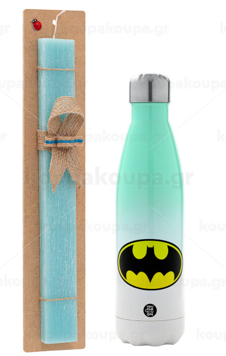 Batman, Πασχαλινή Λαμπάδα με Μεταλλικό παγούρι θερμός Πράσινο/Λευκό (Stainless steel), διπλού τοιχώματος, 500ml & κερί αρωματικό πλακέ (30cm) (ΤΙΡΚΟΥΑΖ)