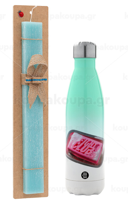 Fight Club, Πασχαλινή Λαμπάδα με Μεταλλικό παγούρι θερμός Πράσινο/Λευκό (Stainless steel), διπλού τοιχώματος, 500ml & κερί αρωματικό πλακέ (30cm) (ΤΙΡΚΟΥΑΖ)